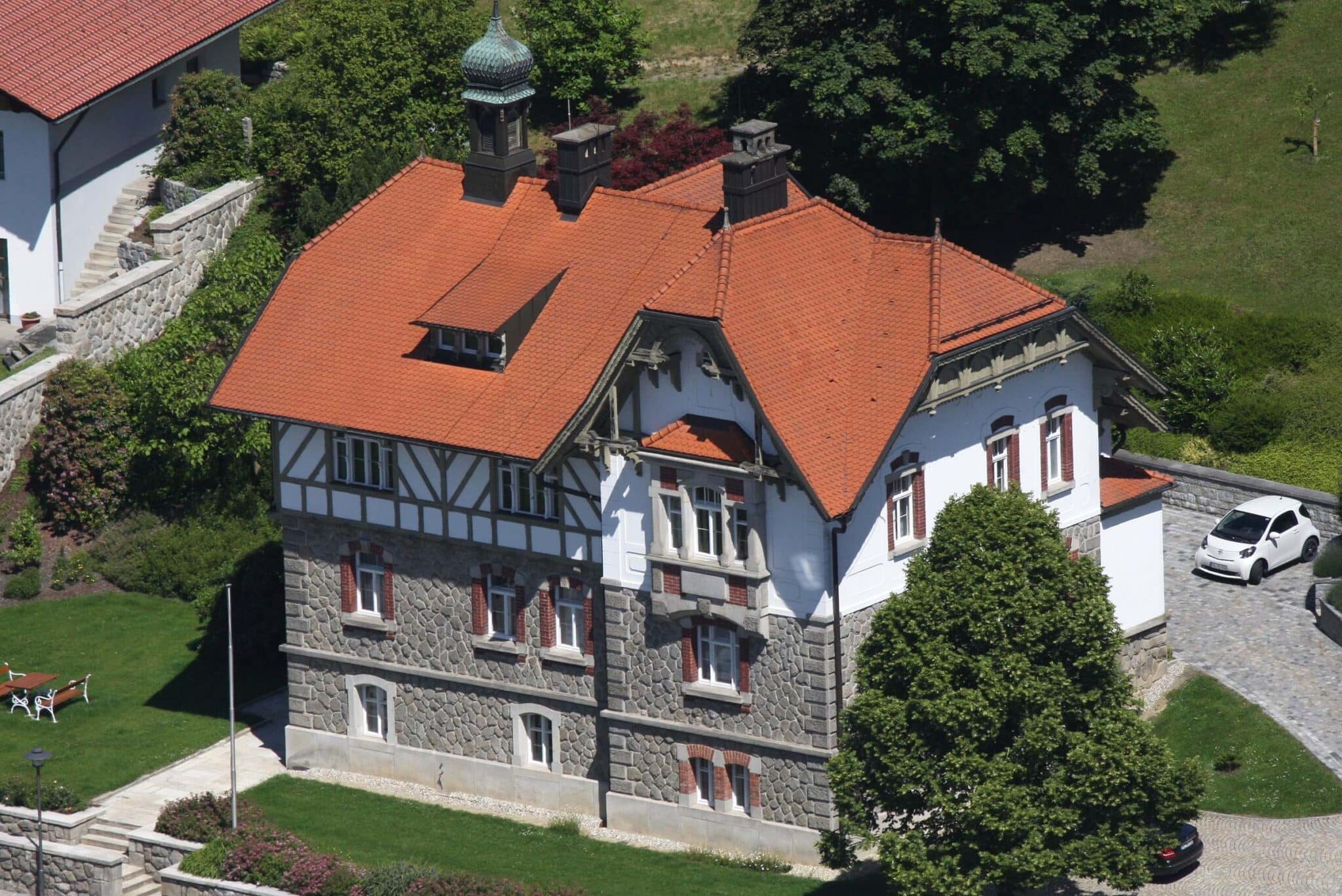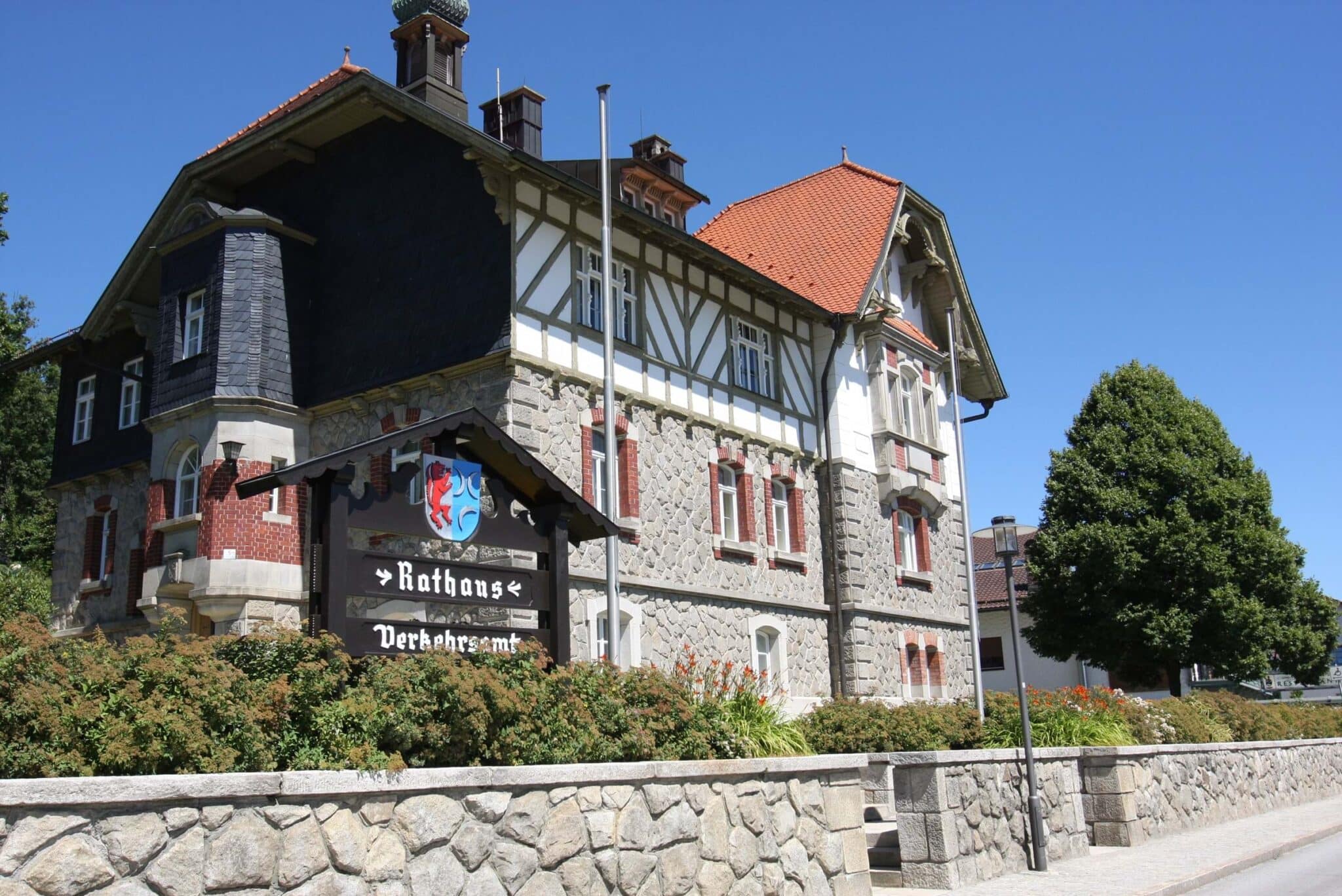 1903 in „Zyklopenmauerwerk“ erbautes Gebäude. Die Bauweise weist auf die Mitwirkung italienischer Arbeiter hin. Es handelt sich um die ehemalige Kerber-Villa. Als diese mit Granit aus dem eigenen Steinbruch gebaut wurde, gehörte der Betrieb mit nahezu 1000 Beschäftigten zu den größten Granitunternehmen des Bayerischen Waldes. Neben dem Büchlberger betrieben die Gebrüder Kerber Steinbrüche in Hauzenberg, Tittling und Fürstenstein.