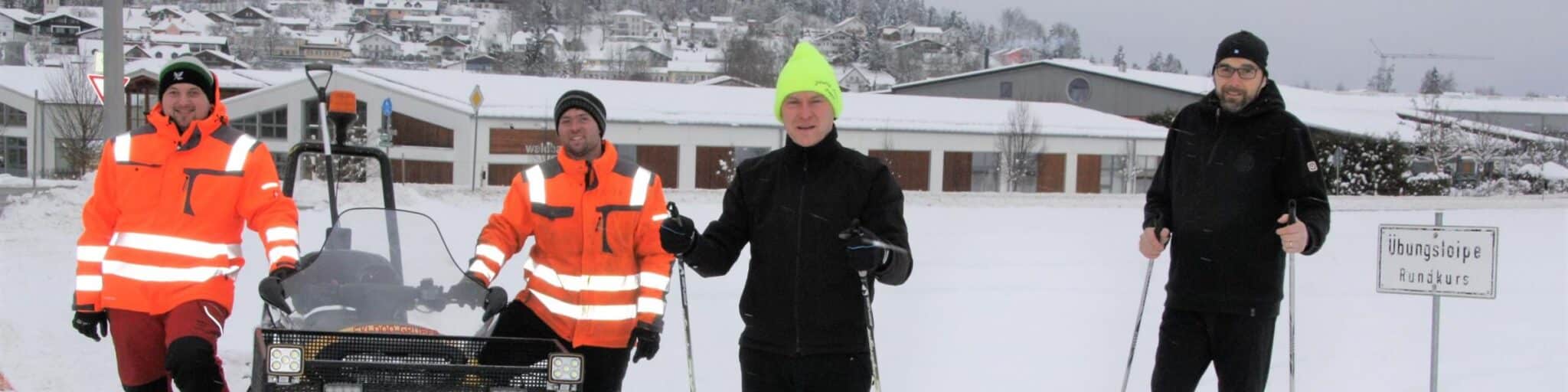 siehe auch Bild: Niklas Krenn (v.li.) und Daniel Maier haben zur Freude von Bürgermeister Josef Hasenöhrl und seinem Gast Christian Grünberger drei landschaftlich recht ansprechende Strecken präpariert.
