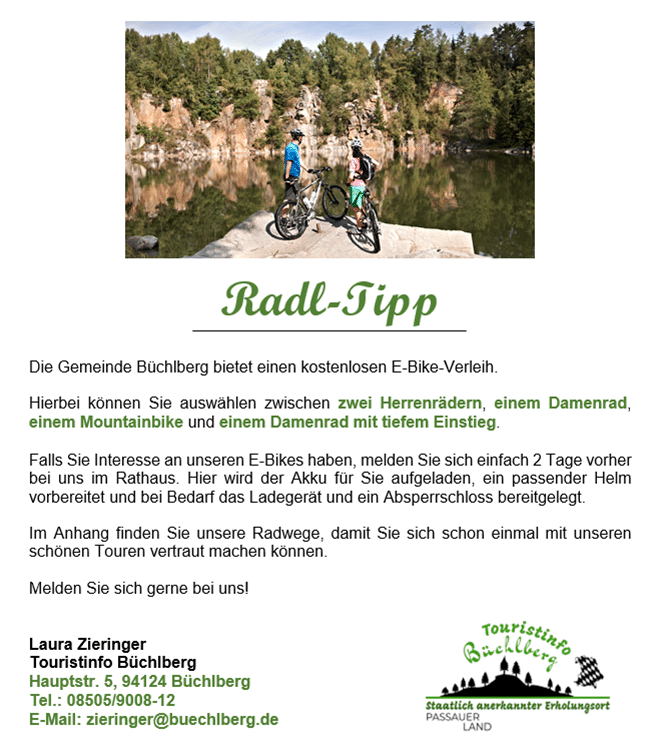 Tourist-Info Büchlberg, Hauptstr. 5, 94124 Büchlberg, Tel. 08505/9008-12